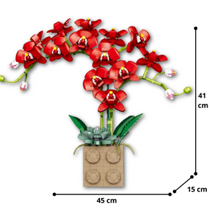 - 🎨 Design : Ce set recrée avec précision l’élégance naturelle des orchidées rouges, avec une tige élancée, des feuilles détaillées et un vase original en forme de grosse brique beige ! 🧱